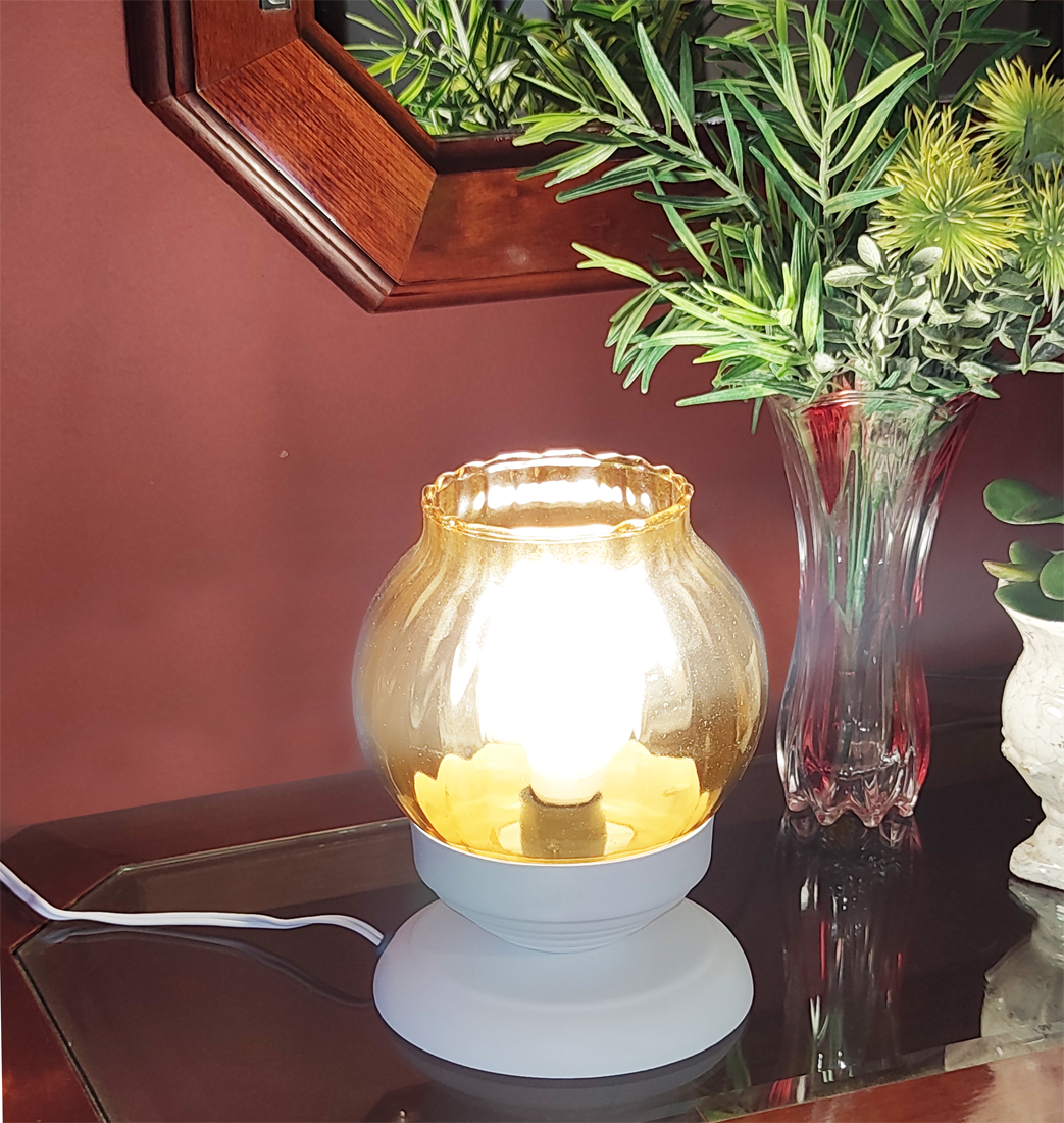 Abajur Sensitive Cobre Com Bola Americana Babada LV Ambar