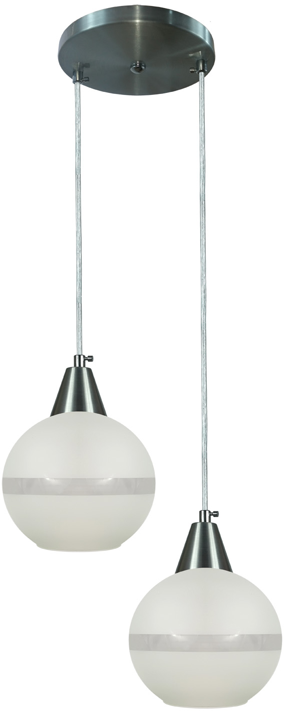 Pendente Art Aluminio Escovado com 2 Bolas Americanas Lisas Leitosas