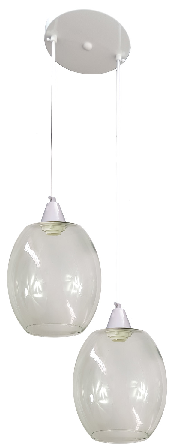 Pendente Art Aluminio Branco com 2 Barricas Lisa Transparentes Medias