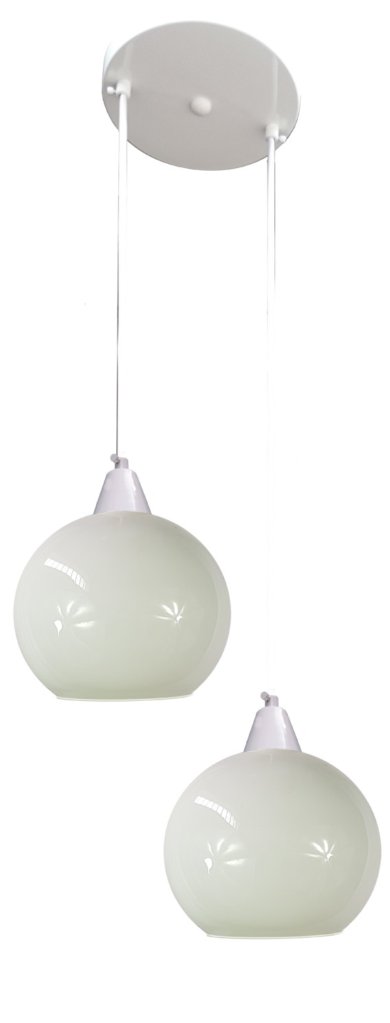 Pendente Art Aluminio Branco com 2 Bolas Americanas Lisas Leitosas